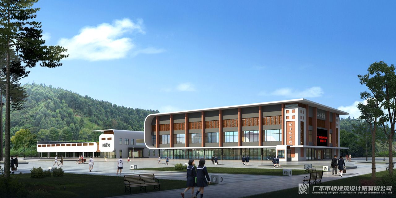 在场地西面设置一个停车场入口和一个学校主入口,北面30米规划路设置一个学校次入口和一个体育馆入口,南面设置学校后勤入口,地块内部设置4米宽的消防道路及6米宽的校园道路。